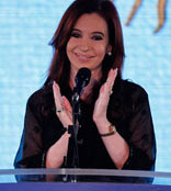 La presidenta Cristina Fernández de Kirchner agradece en Buenos Aires el apoyo de simpatizantes, luego de triunfar con ventaja de más de 30 por ciento de votos sobre su más cercano contendiente Foto Ap