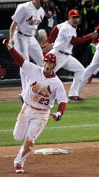 Con un cuadrangular en la undécima entrada, David Freese le dio el triunfo a los Cardenales con marcador de 10-9 sobre los Rangers. Hoy se define en séptimo juego al campeón de la Serie Mundial Foto Ap
