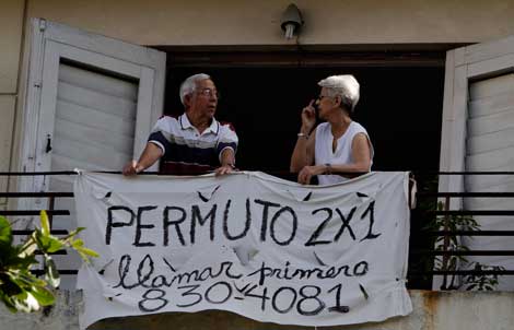 Tras cinco décadas de prohibición, los cubanos podrán, a partir del 10 de noviembre, realizar legalmente la compraventa, permuta, donación y adjudicación –por divorcio, fallecimiento o salida definitiva del país del propietario– de viviendas. La reforma, aprobada en abril pasado por el sexto congreso del gobernante Partido Comunista, busca dinamizar la economía isleña. Las transferencias inmobiliarias se realizarán ante notario y se aplicarán los impuestos correspondientes. En La Habana se empezaron a desplegar anuncios para ese fin Foto Ap
