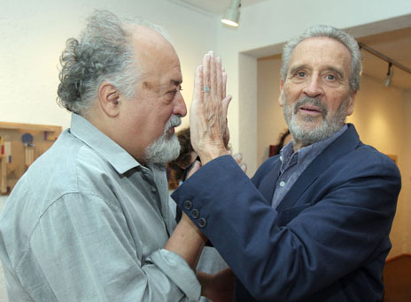 El artista Vicente Rojo, acompañado de Gabriel Macotela, inauguró ayer en la galería Juan Martín su exposición Salón de la fama, con la cual –mediante 50 obras realizadas en el pasado año– continúa su homenaje a figuras del arte Foto María Luisa Severiano