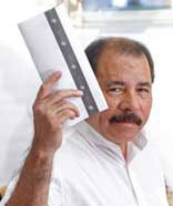 El presidente Daniel Ortega, candidato del Frente Sandinista de Liberación Nacional, al momento de depositar su sufragio Foto Ap