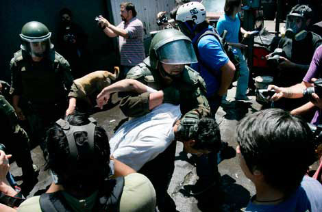 Al menos 58 alumnos fueron detenidos tras enfrentarse con la policía en distintos puntos de Santiago, mientras 30 fueron arrestados durante el desalojo del colegio Darío Salas. Los disturbios comenzaron en la mañana, cuando los estudiantes, que reclaman desde hace siete meses una educación pública gratuita, intentaron marchar por calles céntricas sin autorización oficial. Por la tarde, una manifestación programada también fue dispersada de manera violenta por los uniformados Foto Reuters