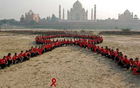 Un listón humano fue formado enfrente del histórico Taj Mahal, en India, como parte del Día Mundial contra el Sida. Ban Ki-moon, secretario general de la Organización de Naciones Unidas, dijo que