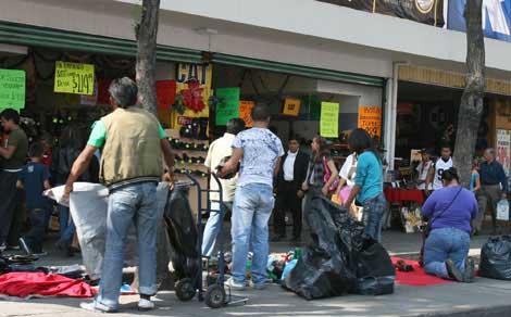 Como cada año en estas fechas decembrinas, miles de comerciantes informales ocupan las principales calles del centro de la capital. La imagen corresponde al Eje Central Lázaro Cárdenas Foto María Meléndrez Parada