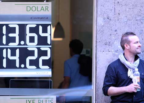 En algunas instituciones bancarias y casas de cambio del país, el dólar se vendió ayer nuevamente por encima de los 14 pesos Foto Guillermo Sologuren