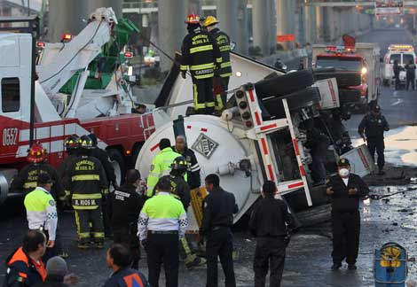 Caos vial por casi 10 horas, la movilización de diversos cuerpos de rescate y el desalojo de 200 vecinos provocó ayer la volcadura de una pipa con 37 mil litros de ácido clorhídrico sobre la avenida Oceanía, en el norte de la ciudad de México Foto Cuartoscuro