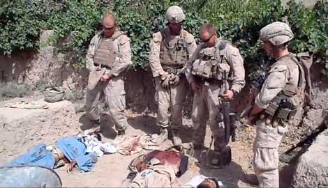 La grabación difundida de manera anónima en sitios de Internet muestra a cuatro militares estadunidenses riéndose mientras orinan sobre tres cadáveres masculinos, que el video identifica como