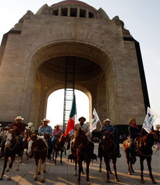 Integrantes de organizaciones campesinas de Chihuahua, Zacatecas, San Luis Potosí y otros estados del norte del país se concentraron en el Monumento de la Revolución tras su arribo a la capital. En el espacio desplegaron caballos, vacas, tractores y otros instrumentos de labranza en demanda de fondos federales para enfrentar la sequía Foto Cristina Rodríguez