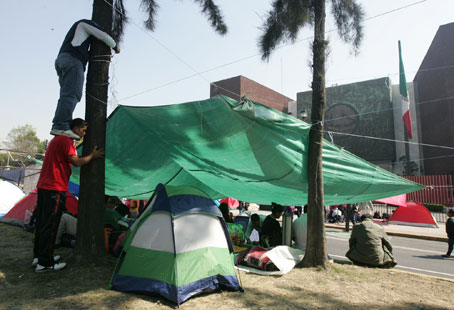 Cientos de profesores de la Coordinadora Nacional de Trabajadores de la Educación bloquearon durante varias horas los accesos a la Cámara de Diputados en demanda de que el Congreso deseche las reformas al artículo 24 constitucional, que permiten al clero participar en actividades de enseñanza en escuelas. También rechazaron los exámenes de evaluación aplicados por la SEP, entre ellas la prueba Enlace. Ayer arribó a la capital del país el grueso de caravanas de maestros de varios estados que participarán en el paro y marcha del Zócalo a Los Pinos Foto José Antonio López
