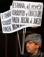 Simpatizantes del juez Baltasar Garzón se manifestaron frente al Tribunal Supremo, donde se le sigue un proceso que podría costarle 20 años de inhabilitación Foto Reuters
