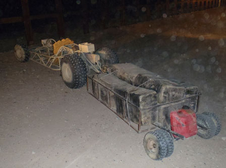 El Departamento de Seguridad Interna de Estados Unidos divulgó la imagen de un vehículo de carreras, de los denominados go kart, que remolcaba un cargamento de mariguana en el oeste de Arizona. El transporte fue descubierto por agentes fronterizos cuando transitaba de noche en el desierto de Yuma. Su conductor huyó Foto Reuters