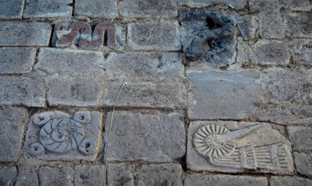 Especialistas del Instituto Nacional de Antropología e Historia informaron del descubrimiento de 23 lápidas de tezontle, de más de 550 años de antigüedad, en una franja de piso ubicada frente a los vestigios del Templo Mayor, en el Centro Histórico de la ciudad de México. Las losas
