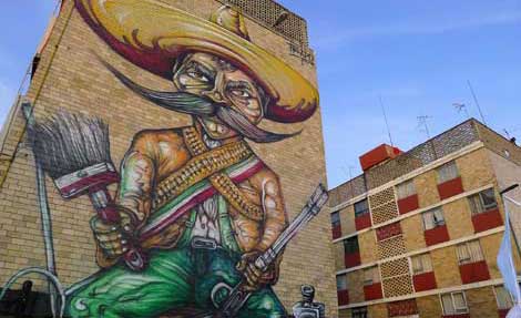 El artista plástico argentino Alberto Segatori realizó la obra, de 20 metros de alto por nueve de ancho, en uno de los costados del edificio 1 de la unidad 4 del Issste, delegación Venustiano Carranza.