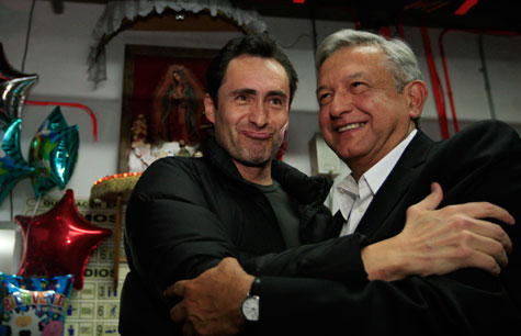 Demián Bichir y Andrés Manuel López Obrador se saludaron en camerinos al término de la obra Nadando con tiburones. El aspirante presidencial dijo: