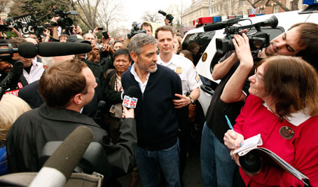 que podría causar una crisis humanitaria. La estrella de Hollywood encabezó a cientos de activistas y al final fue esposado por hacer caso omiso de las órdenes policiacas para que abandonara el lugar. El histrión culpó al presidente sudanés Omar al-Bashir de