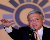 Convoca a buscar el cambio por el camino de la concordia; tumultos en el Polyforum Siqueiros