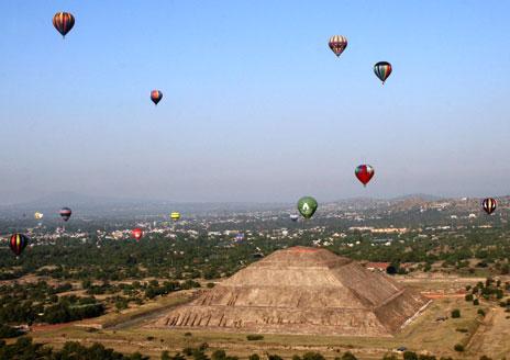 Globos aerostáticos sobrevuelan la zona arqueológica de Teotihuacán, en un periplo que realza la grandeza del pasado Foto Javier Salinas