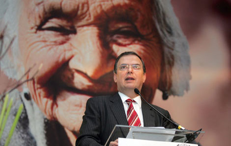 Marcelo Ebrard inauguró el encuentro que llevan a cabo la Comisión Económica para América Latina y el Caribe (Cepal) y el Gobierno del Distrito Federal. El funcionario dijo que sin una política universal de cobertura a los adultos mayores no se puede hablar de sociedad igualitaria. Subrayó que México es un país con un sistema de pensiones injusto y limitado. El organismo regional se manifestó en favor de que la tarjeta de pensión alimentaria que se otorga en la ciudad de México se extienda a todos los países de la zona Foto María Luisa Severiano