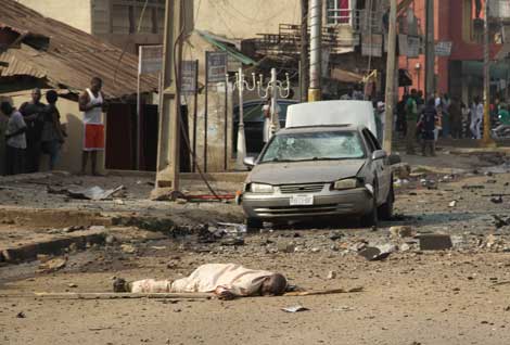 Dos coches bomba estallaron frente una iglesia en Kaduna, en el norte del país africano. Ninguna organización se adjudicó el ataque, pero el grupo islamita Boko Haram realizó acciones similares contra estos recintos y otros lugares en diciembre pasado. El papa Benedicto XVI condenó el atentado durante su mensaje de Pascua urbi et orbi en el Vaticano. El presidente nigeriano Goodluck Jonathan, cuyo gobierno enfrenta una insurrección que suma mil muertos desde 2009, llamó a superar estos desafíos Foto Ap