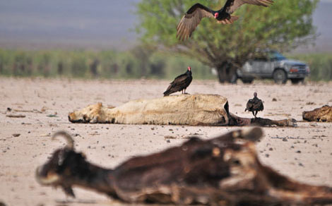 La prolongada escasez de lluvias en la Comarca Lagunera ha provocado la muerte de cientos de miles de cabezas de ganado. En Chihuahua, el gobernador César Duarte demandó la entrega de 4 mil millones de pesos en recursos extraordinarios para paliar la crisis agropecuaria. Se informó que 307 comunidades sufren de desabasto total de agua potable. En Sinaloa, autoridades de Culiacán exigieron a agricultores que dejen de sustraer el líquido del canal de San Lorenzo, destinado sólo para consumo humano Foto Miguel Ángel Reyna