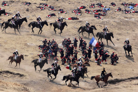 Con un presupuesto de 202 millones de pesos, se llevaron a cabo en Puebla los actos conmemorativos del 150 aniversario de la batalla del 5 de mayo. La representación de la defensa de los fuertes de Loreto y Guadalupe se realizó en instalaciones de la Sedena Foto Reuters