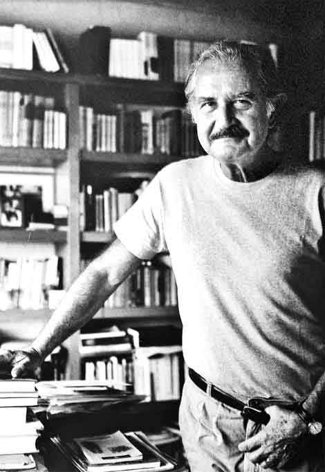 El espíritu no muere. Se traslada, escribió Carlos Fuentes Macías (1928-2012) en su libro En esto creo (2002). La imagen, en la biblioteca de su casa en la ciudad de México, en 1984 Foto Rogelio Cuéllar