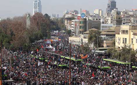 Decenas de miles de estudiantes, acompañados por profesores y padres de familia, marcharon por el centro de Santiago para renovar sus demandas de cambios en el sistema educativo, uno de los más caros y desiguales del mundo, ya que incluso en universidades públicas se cobran miles de dólares por estudiar.