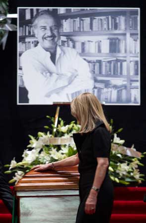 Silvia Lemus (en la imagen), esposa de Carlos Fuentes, comentó ese pasaje cuando planteó al escritor llevarlo al hospital donde falleció. El homenaje de cuerpo presente en el Palacio de Bellas Artes se dio en dos actos: primero fue una acotada ceremonia oficial y más de una hora después se permitió el ingreso del público Foto Ap