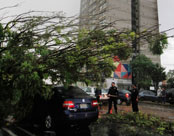 La lluvia y los fuertes vientos registrados ayer en la ciudad de México dejaron 34 personas lesionadas, árboles y espectaculares derribados, y la destrucción del campamento de maestros en el Zócalo Foto Víctor Camacho