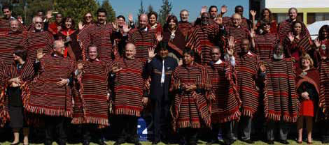 le falta eficacia y representatividad. El presidente Evo Morales y delegados de la OEA, vestidos con el tradicional poncho, posaron para la foto oficial Foto Ap