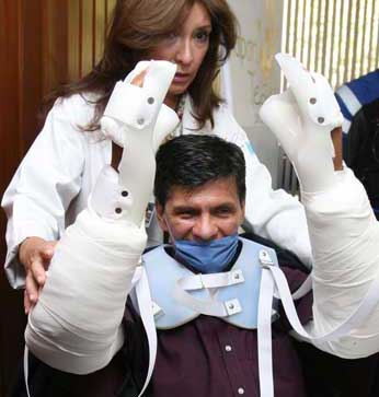 Salvador Zubiránrealizaron la cirugía a Gabriel Granados, la cual duró 17 horas. La intervención es la primera que se realiza en América Latina. Fue un proceso complejo pues hubo que unir huesos, arterias, venas, nervios, músculos y tendones. Calculan que la rehabilitación durará alrededor de dos años Foto María Meléndrez Parada