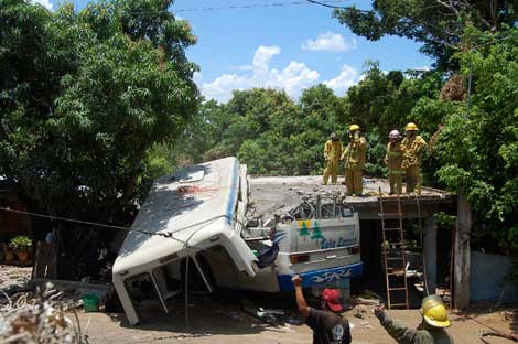 Un autobús que transportaba alumnos, maestros y padres de familia hacia un zoológico a las afueras de Uruapan volcó y se estrelló contra una vivienda en la carretera que va hacia El Sabino. Seis adultos y cinco menores de edad fallecieron y 35 resultaron heridos. Al parecer, la unidad de la línea Tata Lázaro se quedó sin frenos Foto Reuters