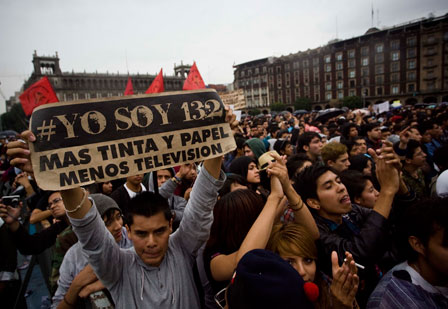Durante el concierto Por la paz y la democracia, organizado en el Zócalo de la ciudad de México por integrantes de #YoSoy132, la dirigente chilena hizo un llamado al movimiento a superar la coyuntura electoral Foto Xinhua