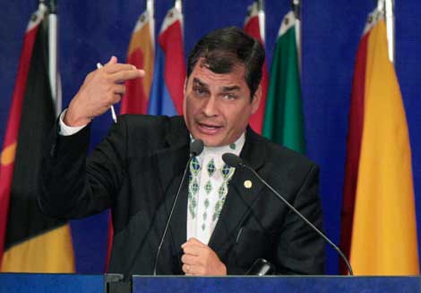 El presidente Rafael Correa durante su participación en la Conferencia de Naciones Unidas sobre Desarrollo Sostenible Río+20, que se realiza en Río de Janeiro, Brasil. En entrevista con La Jornada, el mandatario consideró que las naciones latinoamericanas deben luchar