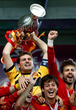 El guardameta Iker Casillas levanta la copa tras el triunfo español en el estadio de Kiev. En la vida a veces te enfrentas a alguien más fuerte. Así fue hoy, aceptó el portero italiano Gianluigi Buffon Foto Ap