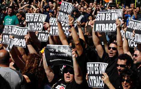 Rajoy, dimisión. Las marchas estuvieron encabezadas de nuevo por empleados públicos de todos los ámbitos. Las medidas oficiales incluyen aumento en el IVA, reducciones salariales y recortes en educación y salud Foto Reuters