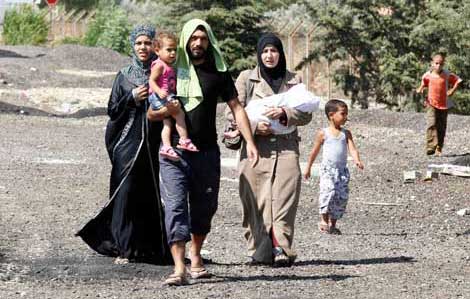 Familias sirias huyen de un campo de refugiados cerca de la frontera de su país con Turquía. La situación de escasez de alimentos en el refugio ocasionó enfrentamientos con la policía Foto Reuters
