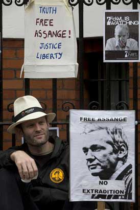 Muestras de apoyo en favor de Julian Assange, afuera de la embajada de Ecuador en Londres Foto Reuters