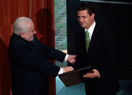 El presidente del TEPJF, Alejandro Luna Ramos, entregó ayer a Enrique Peña Nieto la constancia de mayoría que lo acredita como presidente electo. El priísta aseguró que