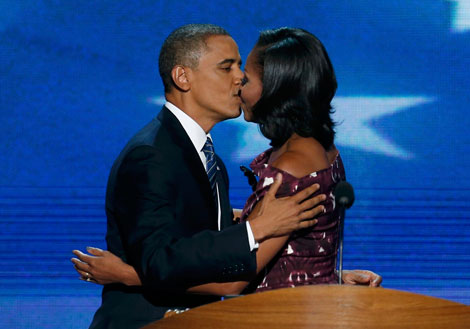 El presidente Barack Obama con su esposa Michelle al momento de su arribo a la Convención Nacional del Partido Demócrata, en Charlotte. El mandatario dijo que los estadunidenses enfrentarán en las urnas la decisión más importante en una generación Foto Reuters