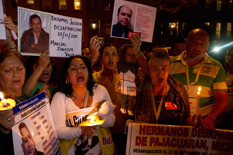 Durante el recorrido de la Caravana por la Paz, el poeta Javier Sicilia aseguró en Nueva York que detrás de las cifras de muertos en la lucha contra el crimen organizado que se da en México, mostramos que hay dolor y destrucción Foto Elizabeth Coll