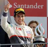 El mexicano Sergio Pérez brilló ayer en el Gran Premio de Italia al terminar en segundo puesto. El británico Lewis Hamilton fue el triunfador Foto Ap