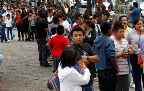 Dos enormes filas –una de mil 500 personas, según la agencia Notimex– se hicieron para poder ingresar al inmueble. La mayoría eran padres de familias con sus hijos que los llevaban para realizar tareas. Según empleados del museo, la acumulación de gente se debió a que dentro del espacio se realizaban los trabajos de instalación de la 24 edición de la Feria del Libro de Antropología e Historia, que comienza el 27 de septiembre, además de que se exhibe la muestra Samurais, Tesoros de Japón. La restricción de acceso se aplicó como medida de seguridad Foto Marco Peláez