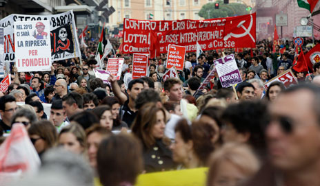 Durante el segundo sábado consecutivo de protestas en Italia (en la imagen), miles de personas exigieron echar al gobierno de Mario Monti, en rechazo a las políticas de austeridad del primer ministro. A su vez, en España una multitudinaria manifestación recorrió calles de Madrid para repudiar las medidas anticrisis del presidente Mariano Rajoy. Los inconformes cercaron el Parlamento español y aseveraron que la dictadura