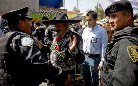 Como parte de los acuerdos entre autoridades delegacionales y representantes vecinales, ayer se realizaron revisiones para evitar la portación de armas en una festividad en Santa María Aztahuacán. En esta y otras localidades, los habitantes señalaron que el incremento de la inseguridad y el uso de pistolas se deben a la negligencia oficial. Confiaron en que el reciente pacto, que prohíbe los tiros al aire en carnavales y mayordomías, pueda generar un ambiente de mejor convivencia social. Ayer fueron detenidos cuatro sujetos por accionar sus armas Foto Jesús Villaseca