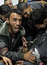 Desde mar y aire, Israel bombardeó por quinto día consecutivo a milicianos y civiles palestinos. En la imagen, la morgue de un hospital en Gaza Foto Ap