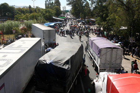 Los 70 mil afiliados a la sección 22 del SNTE suspendieron clases en la entidad. El bloqueo fue efectuado para demandar castigo a los autores de la agresión contra profesores ocurrida en miércoles pasado en la Villa de Mitla. El paro dejó sin clases a un millón 300 mil estudiantes Foto Jorge Pérez Alfonso