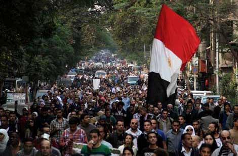 Cientos de egipcios participaron en el funeral de Gaber Salah, un joven que murió en los enfrentamientos con las fuerzas de seguridad en El Cairo la semana pasada. La crisis política fue desencadenada por el anuncio, el jueves pasado, de que el presidente Mohamed Mursi se adjudicaba poderes ampliados, lo que en los hechos impide toda demanda ante la justicia contra sus decisiones Foto Ap