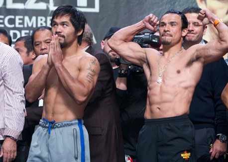 El pugilista mexicano Juan Manuel Márquez (derecha) aseguró que el cuarto combate que sostendrá este sábado en Las Vegas con Manny Pacquiao será