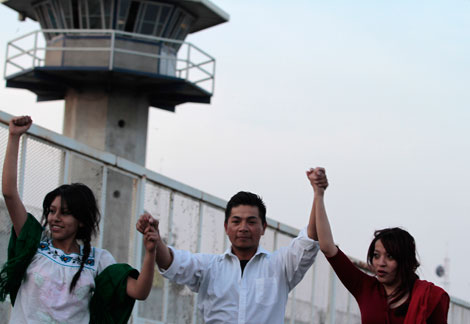 Familiares y amigos de los detenidos el primero de diciembre realizaron un acto político-cultural –que incluyó danza folclórica, malabares y trova– en las inmediaciones del penal femenil de Santa Martha Acatitla. Para hoy tienen programada una marcha Foto Prometeo Lucero